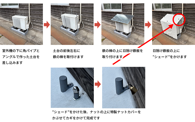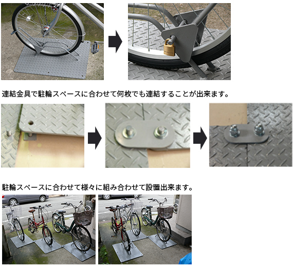 - 2枚の鉄板をジョイントで繋いだシンプルな構造ですが、バイクの盗難防止に威力を発揮します